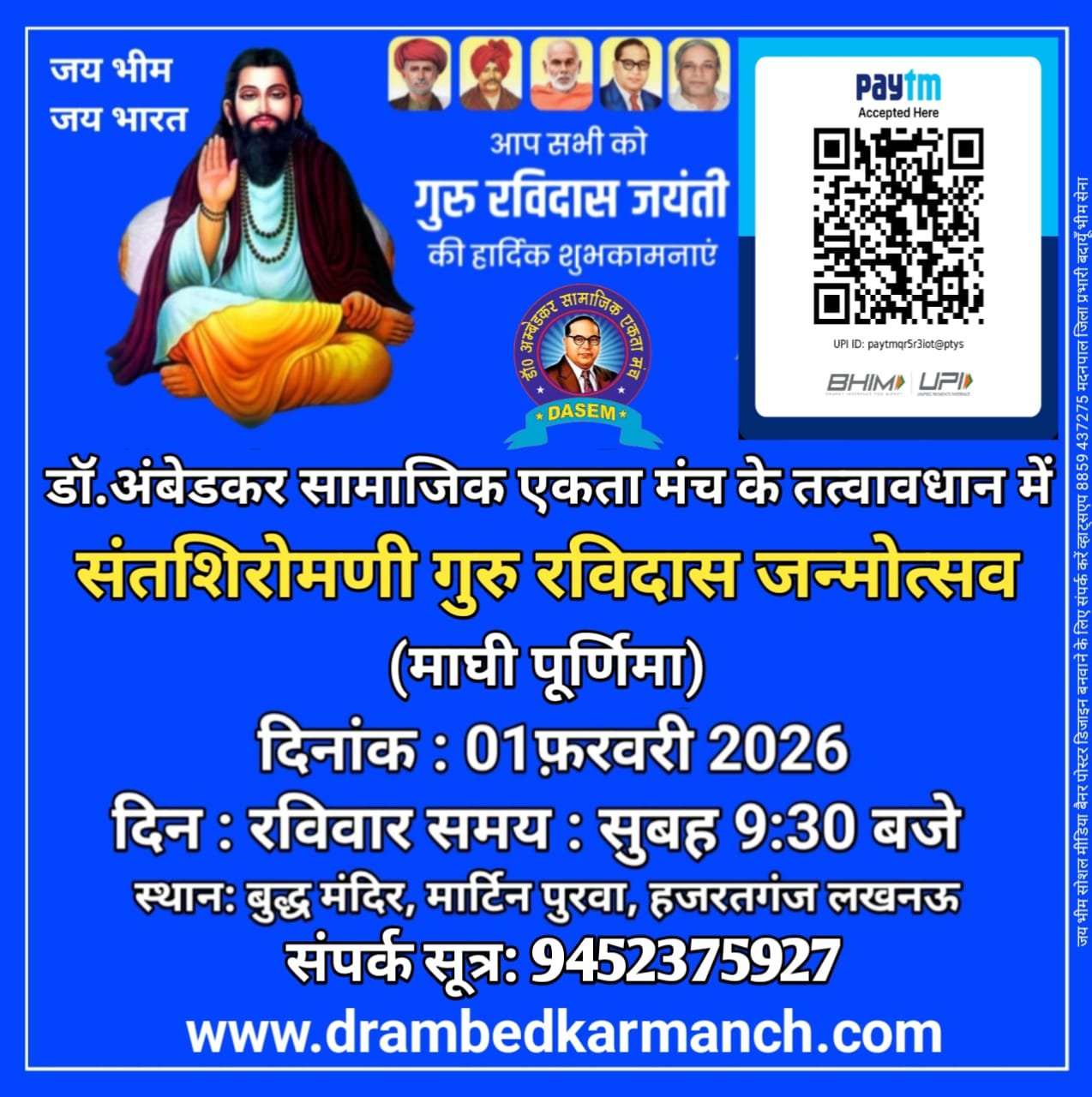 डॉ.अंबेडकर सामाजिक एकता मंच के तत्वावधान में संतशिरोमणी गुरु रविदास जन्मोत्सव (माघी पूर्णिमा)